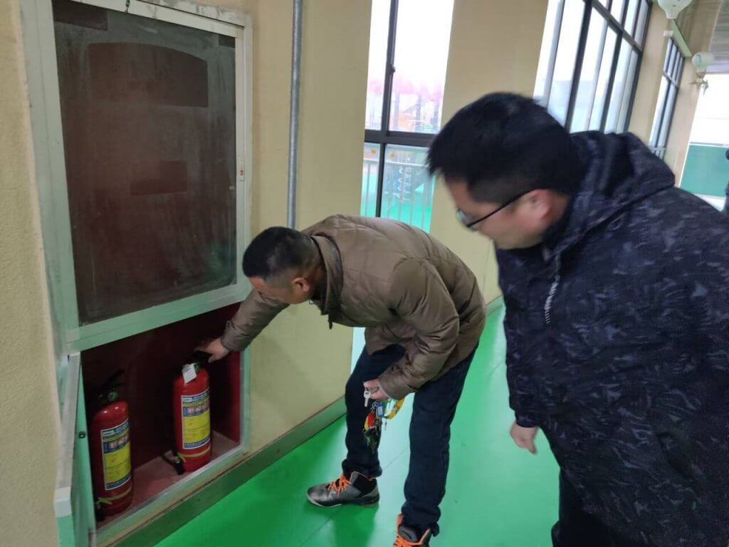 ~ 刘继忠校长带领相关人员对教学楼、食堂、办公室、宿舍和功能室等重要场所进行了检查,重点检查了消防通道、安全出口是否保持畅通,灭火器、消火栓、应急照明灯具、疏散指示标志等消防设施器材是否保持完好有效,监控正常使用等情况。针对检查中发现的消防安全隐患问题,立即整改,确保不留盲区、不留死角、不走过场,保证校园安全工作有制度、有措施、有实效。