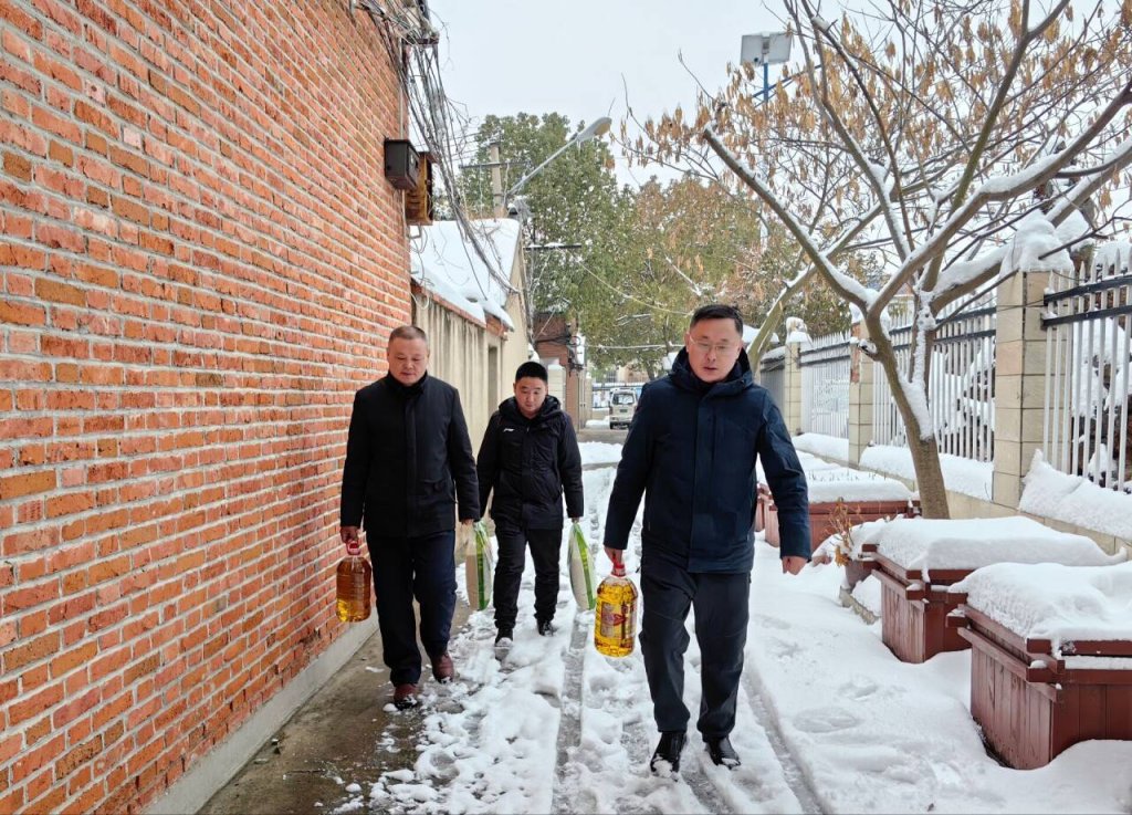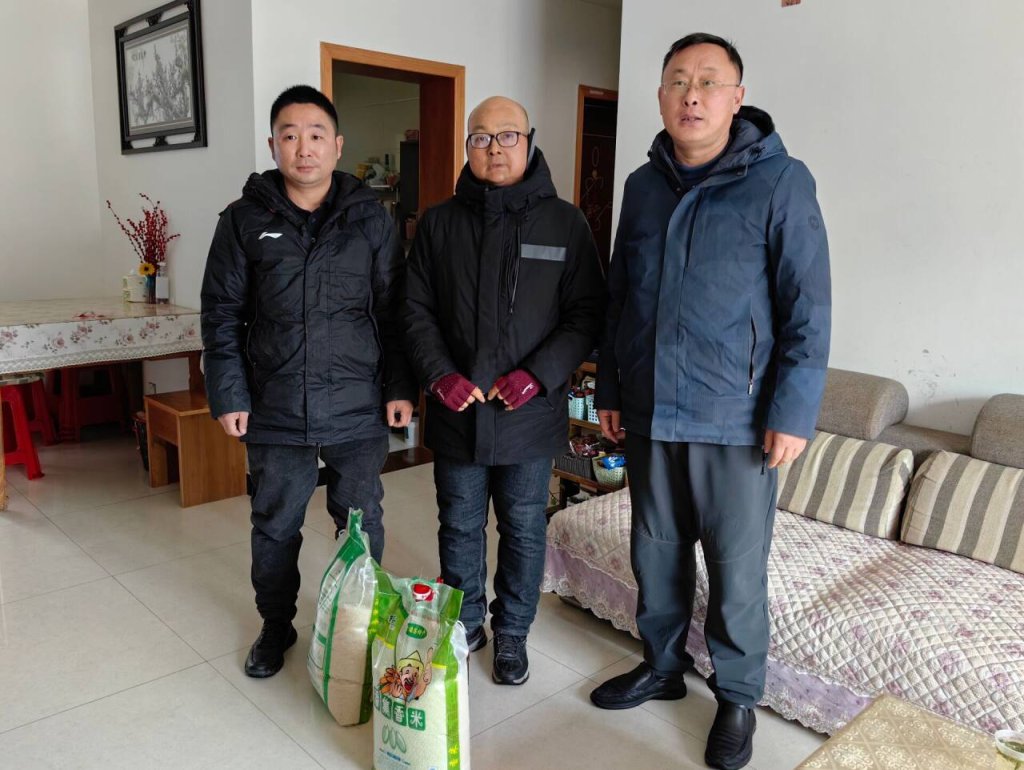 ~ 2024年2月6日,定远县永康小学教育集团党支部书记、校长黄海山、副校长胡启勇、丰安周、米德转一行顶着严寒,踩着积雪到困难教师及退役军人家中走访慰问,给他们送去慰问品并致以新春问候和美好祝愿。
