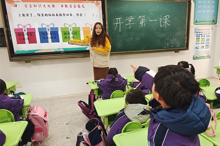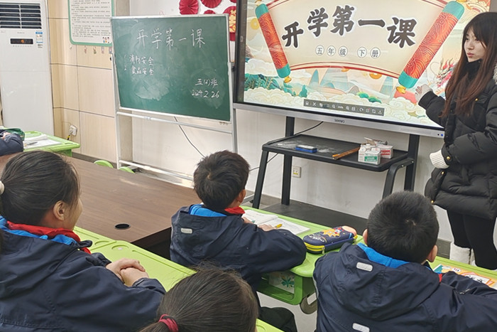 ~ 开学第一课。开学第一课是开学的重要环节,各班级围绕心理健康、安全教育、防欺凌等方面上好“开学第一课”,帮助同学们调节好开学心理状态,增强安全意识;布置班级文化。新学期,新气象,为更好地迎接孩子们归来,老师们各显神通,把教室布置得美美的迎接孩子们的回归;打扫卫生。同学们早早来到教室。擦黑板、扫地、擦窗户,班级内外到处涌动着孩子们忙碌的身影。在班主任的带领下,大家分工明确,配合默契;领书发书。有一种仪式叫“发新书”,老师们为开学报到的孩子们精心设计了自助领书的环节,孩子们自己领取新学期的书本,体验了新学期的仪式感,懂得自己的事情自己做的道理。