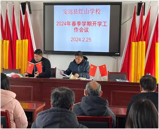 ~ 2月25日下午,定远县红山学校召开了2024年春季学期开学工作会议。会议由党支部书记、校长王飞主持,全体教师参加了会议。