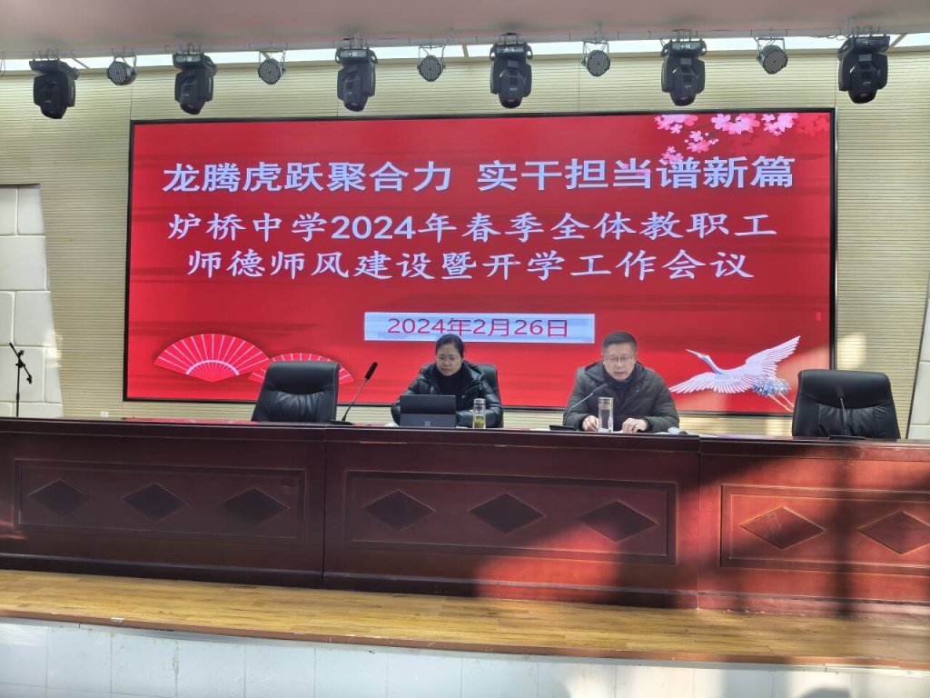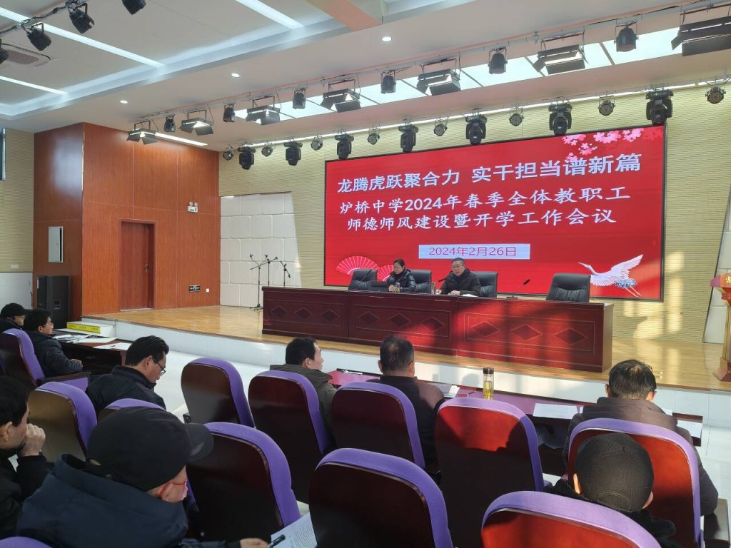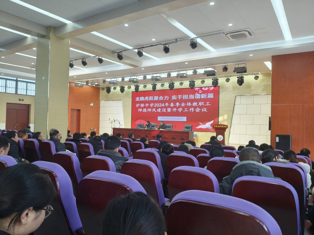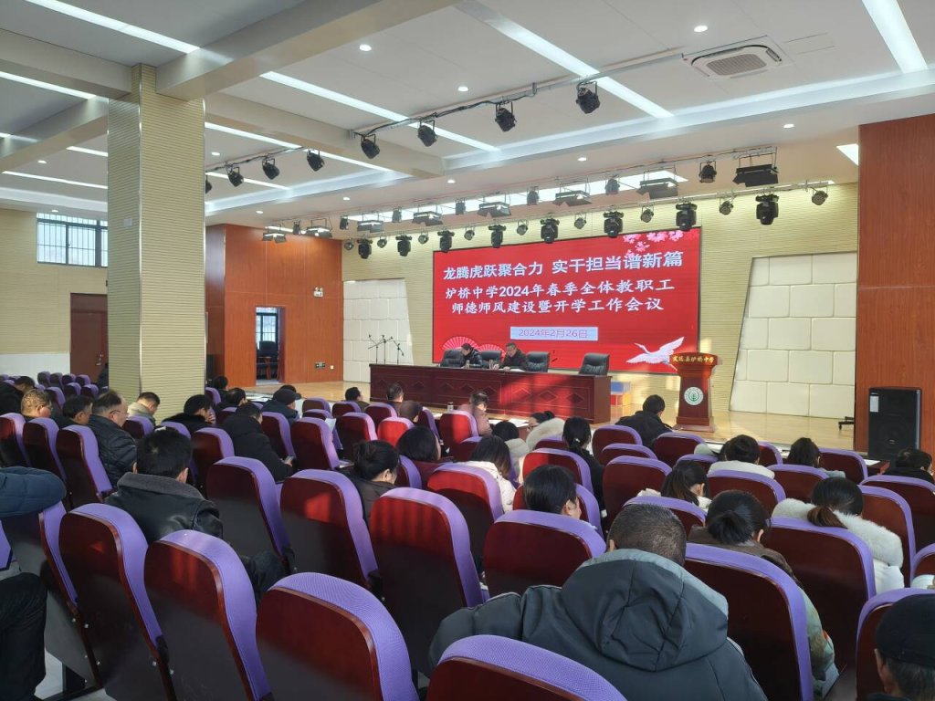 ~ 2月26日下午,定远县炉桥中学在报告厅召开了2024年春季全体教职工师德师风建设暨开学工作会议,学校全体教职工参加了此次会议。