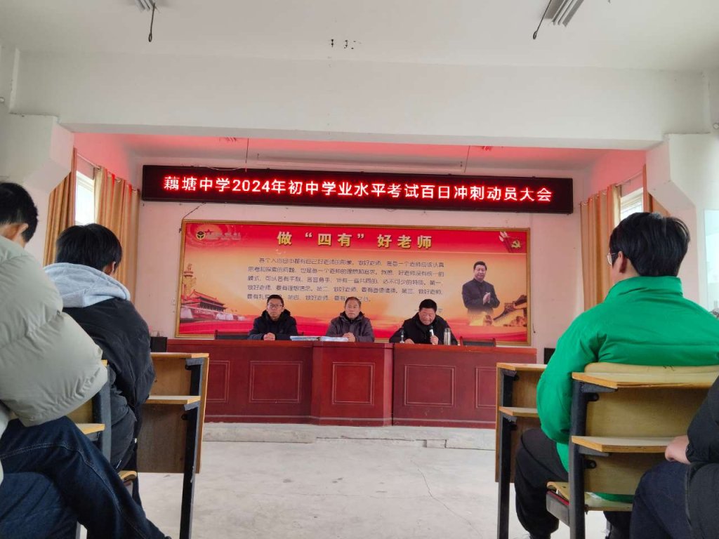 ~ 2024年2月28日,定远县藕塘中学在会议室召开2024年初中学业水平考试百日冲刺动员大会,激励学生努力学习,争取以优异的成绩顺利完成毕业考试,步入各自理想的学校。