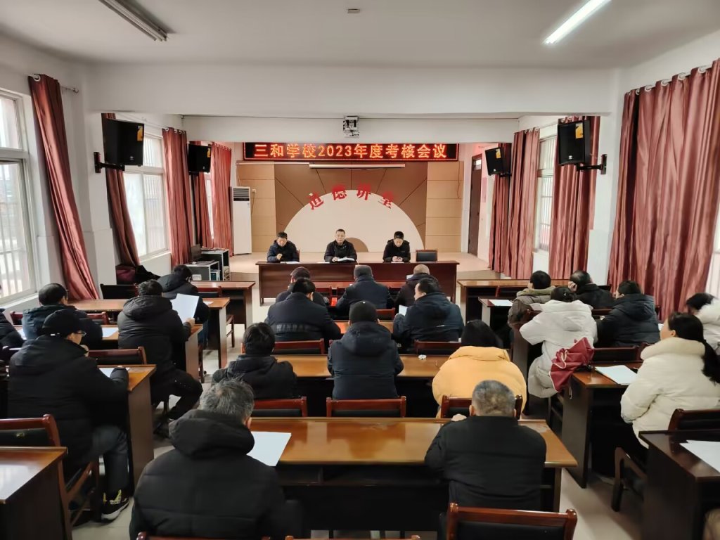 ~ 2月29日,定远县三和学校召开2023年年度考核工作会议,对全体教职工一年来的德能勤绩廉等方面的表现进行综合测评与考核。会议由该校负责人蒋安奎主持,全体在职教职工参加会议。