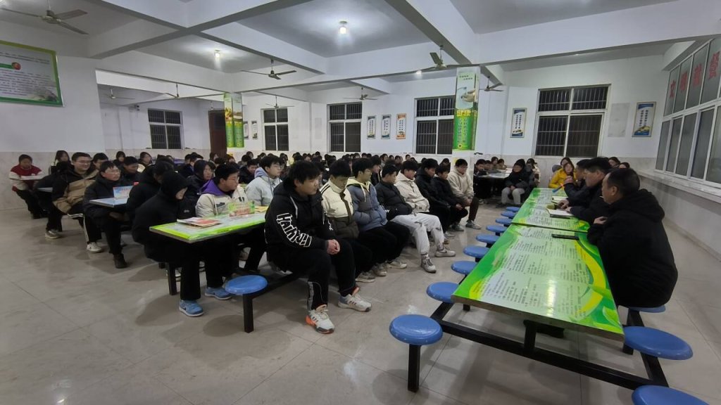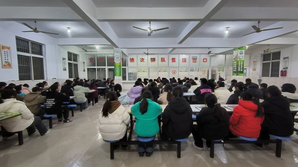 ~ 2月29日晚,定远县年家岗初中在餐厅召开寄宿生会议。会议由该校分管校长李鹏主持,该校党支部书记、校长贾传浩,党支部副书记谢凤勇,全体寄宿生参加会议。
