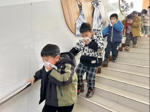 ~ 各班幼儿正在班级开展正常活动时,随着消防警报声的响起,“着火了,着火了,马上撤离!”老师和孩子们迅速有序地撤离。各班老师本着“安全第一”的原则,迅速按照消防疏散路线,有序地撤离到安全地带。随后各班立即清点人数,汇报人员撤离情况。整个安全演练过程中没有疏漏人员,也未发生碰撞和踩踏事件,后勤园长李影对本次消防疏散演练进行了总结。