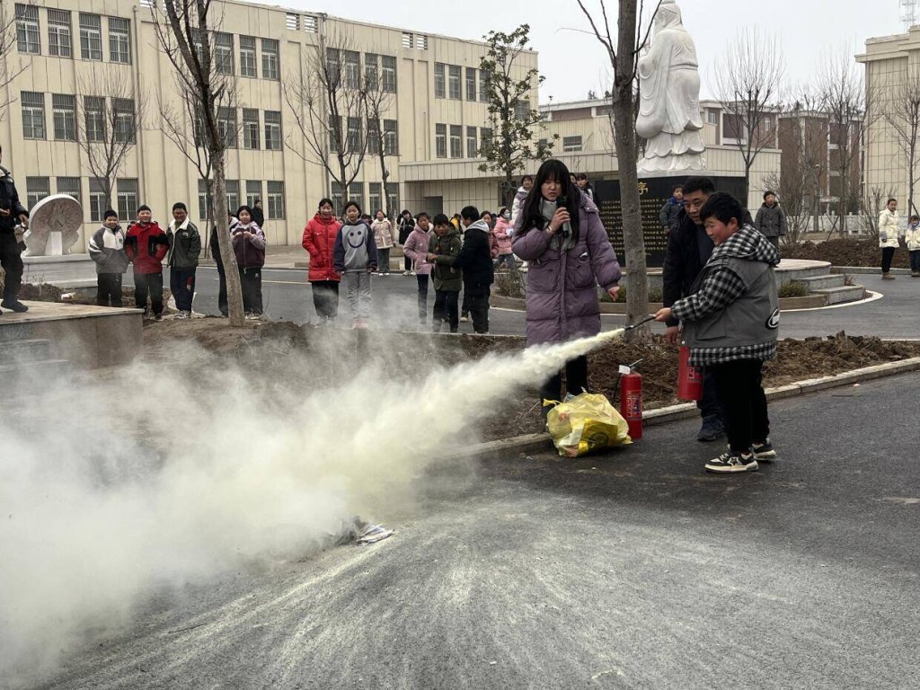~ 学校安全办主任王刚向学生们展示了灭火器的正确使用方法,并进行了实际操作演示。学生们积极参与,亲身体验了灭火的过程,进一步增强了他们的消防技能。(供稿:李淑婷 审核:王爱侠 审签:张中保)