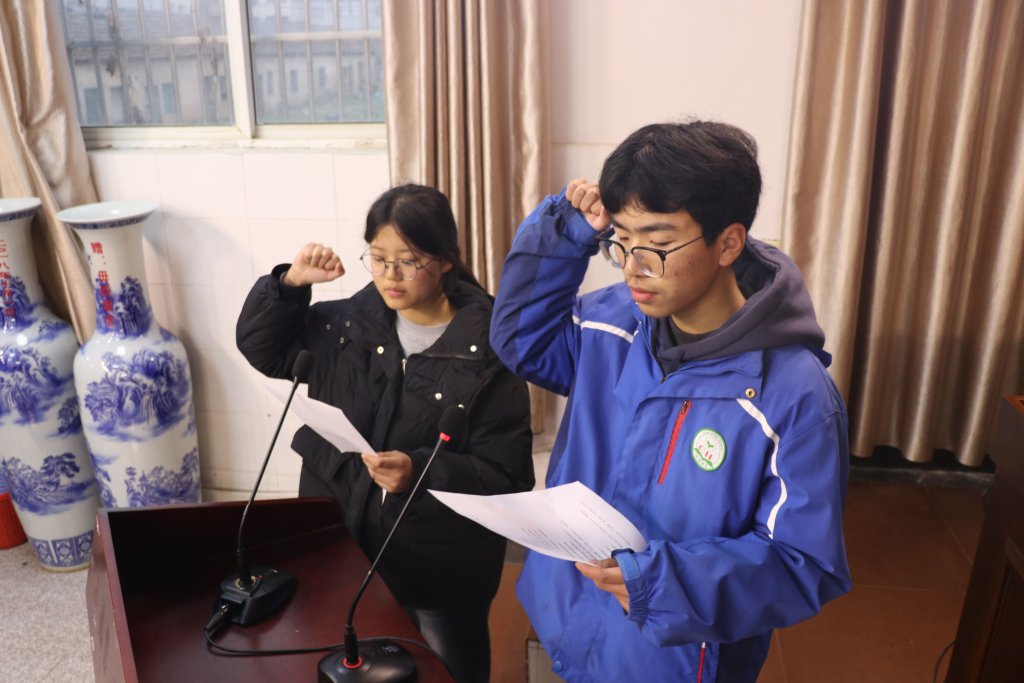 ~ 激动人心的环节是宣誓,来自九(1)班张立志和九(3)班宛馨同学带领全体九年学子集体宣誓“十年磨砺,立志凌绝顶;百日竞渡,破浪展雄风……”铮铮誓言激荡会场,飘扬校园,汇成全师生共同心声:“我们正信心百倍,斗志昂扬,意气风发,誓创辉煌,为学校挣彩,为自己喝彩。”(图文:李发宝 初审:陆培高 审签:欧健海)