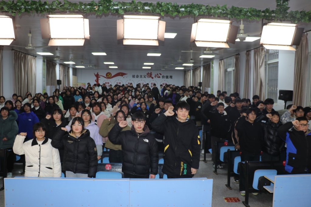 ~ 宣誓会上,刘孝林主任就上学期期末联考作了比对分析,强调本次活动的初衷,希望全体九年级学子坚定信心,不负青春、不留遗憾、全力以赴,奋战百日征程,为学校为父母争光添彩,让青春在奋斗中闪光。