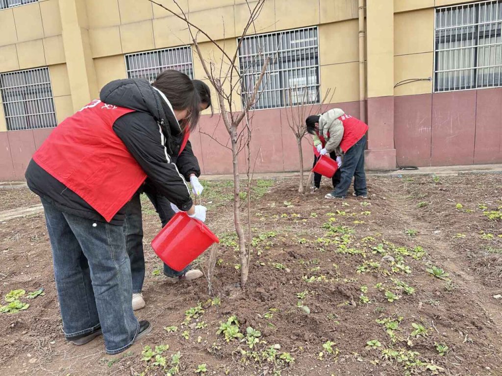 ~ 3月6日下午,学校团委书记带领部分学生代表来到学校劳动实践基地种植小树苗。大家热情高涨,平常连小锄头都没摸过的同学们,此刻却有板有眼地当起了“园艺工程师”。大家分工合作,有的挖坑、有的扶树苗、有的浇水…热闹的场面温馨而快乐。虽然很累脚底全是泥士,但眼前这一片新栽的树苗让大家满心欢喜。