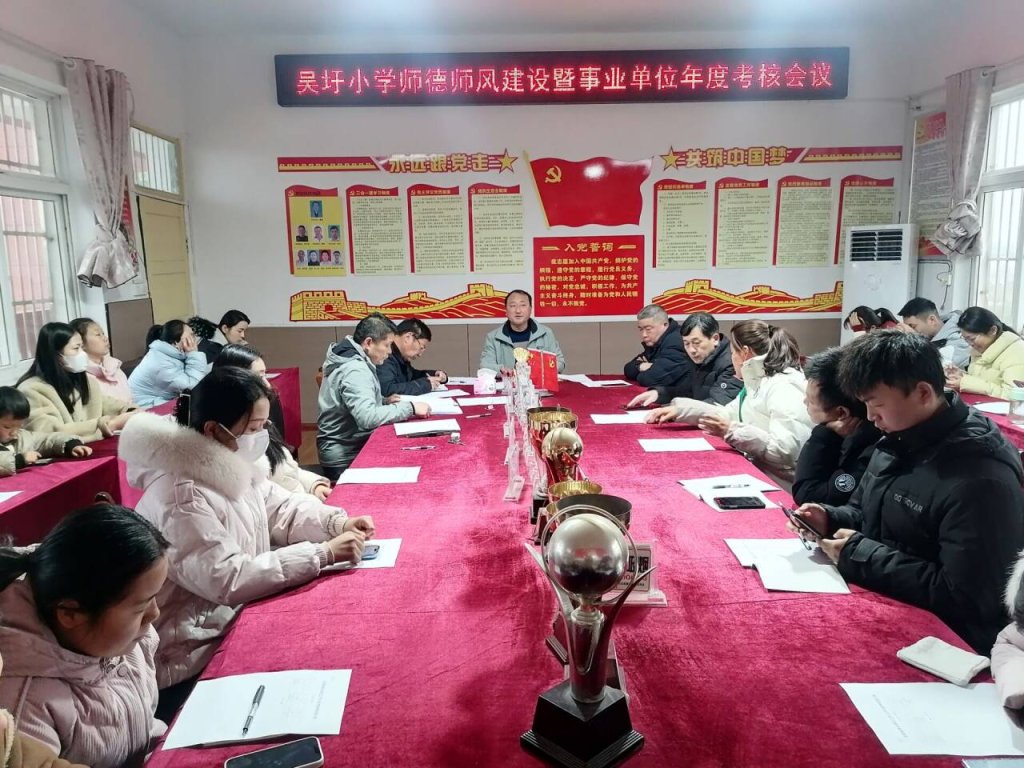 ~ 3月5日下午,定远县吴圩小学在三楼党员活动室召开了2023年度事业单位年度考核专题会议。会议由该校党支部书记、校长童超主持,全体教师参加了会议。