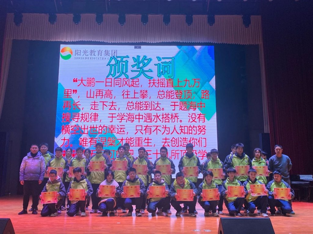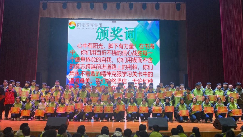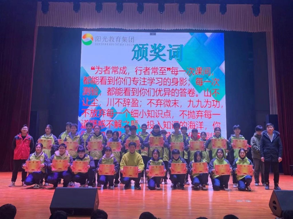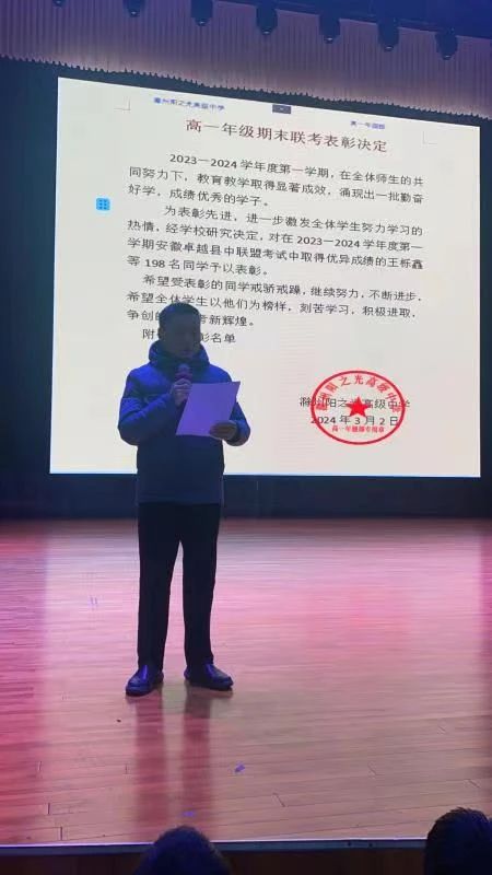 ~ 新学期,新气象。为表彰先进,树立榜样,发挥正面评价在教育中的导向作用,促进学生行而不辍,砥砺前行。3月2日,滁州阳之光高级中学在大雅厅召开了2023-2024学年第一学期高一年级期末总结表彰大会,本次大会由高一年级祝婷婷老师主持。