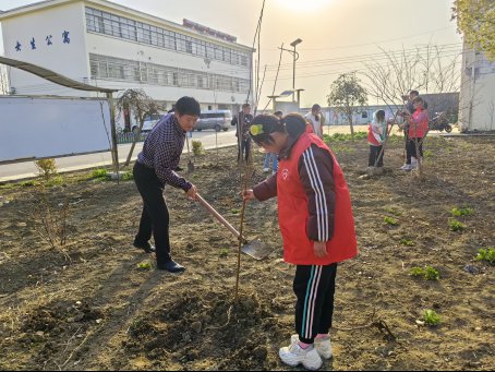 在老师们的带领下,学生志愿者们带着水桶、铁锹和学校提前准备好的树苗来到了劳动实践基地种植区。大家分工明确,齐心协力,相互配合,从选位置挖坑,到扶植树苗、填土、浇水,每一个环节都干得井井有条,同学们干劲十足,呈现出一派热火朝天的劳动场面。志愿者们栽下了一株株树苗,同时也种下了一个个绿色的希望。