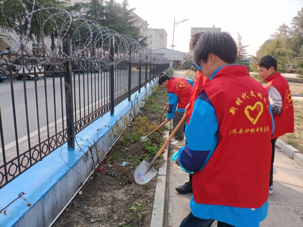 ~ 春意萌动万物苏,又是一年植树时。植绿护绿,关爱自然是中华民族传统美德。3月12日,定远县炉桥中学团委组织团员志愿者开展植树节“呵护绿色 珍爱美丽家园”植树护绿志愿服务活动。旨在引导广大青少年以实际行动践行绿色发展理念,增强青少年爱绿护绿、美化环境的意识,自觉倡导绿色生活,促进生态文明建设。