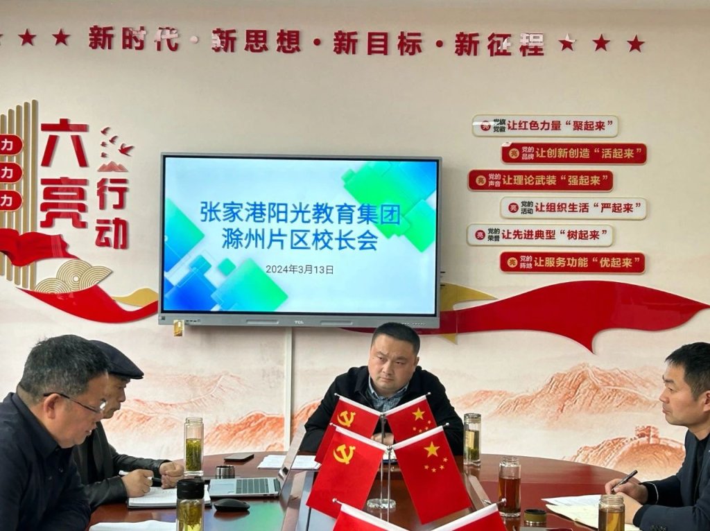 ~ 为谋划发展新动能、构建发展新路径,奋力建设高质量教育体系,确保新学期各项工作安全、平稳、有序开展,张家港阳光教育集团于3月13日下午在来安校区召开集团滁州片区校长会。