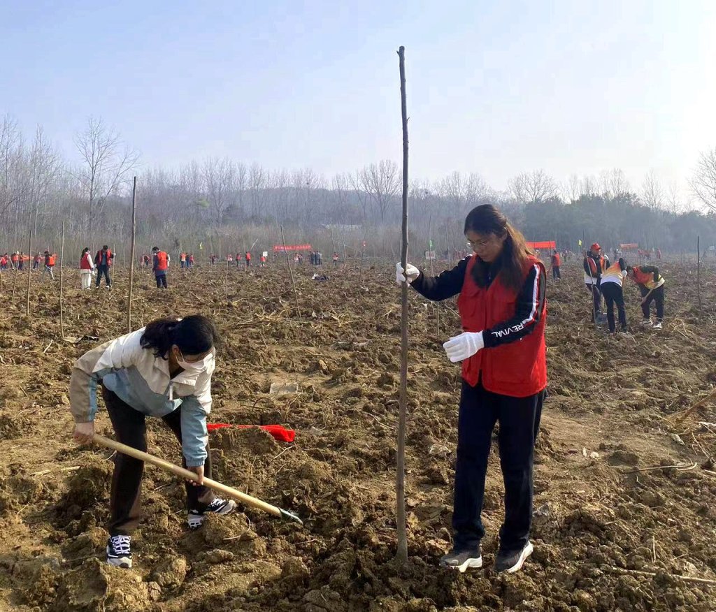 ~ 在活动现场,志愿者们两人一组,相互配合,运苗,扶苗,培土、踩实……分工有序,干劲十足,整个植树现场呈现一派热火朝天的劳动景象。在大家共同的努力下,树苗一棵棵新栽的树苗稳稳地扎根在土壤里,迎风挺立,为大桥镇增美添绿。