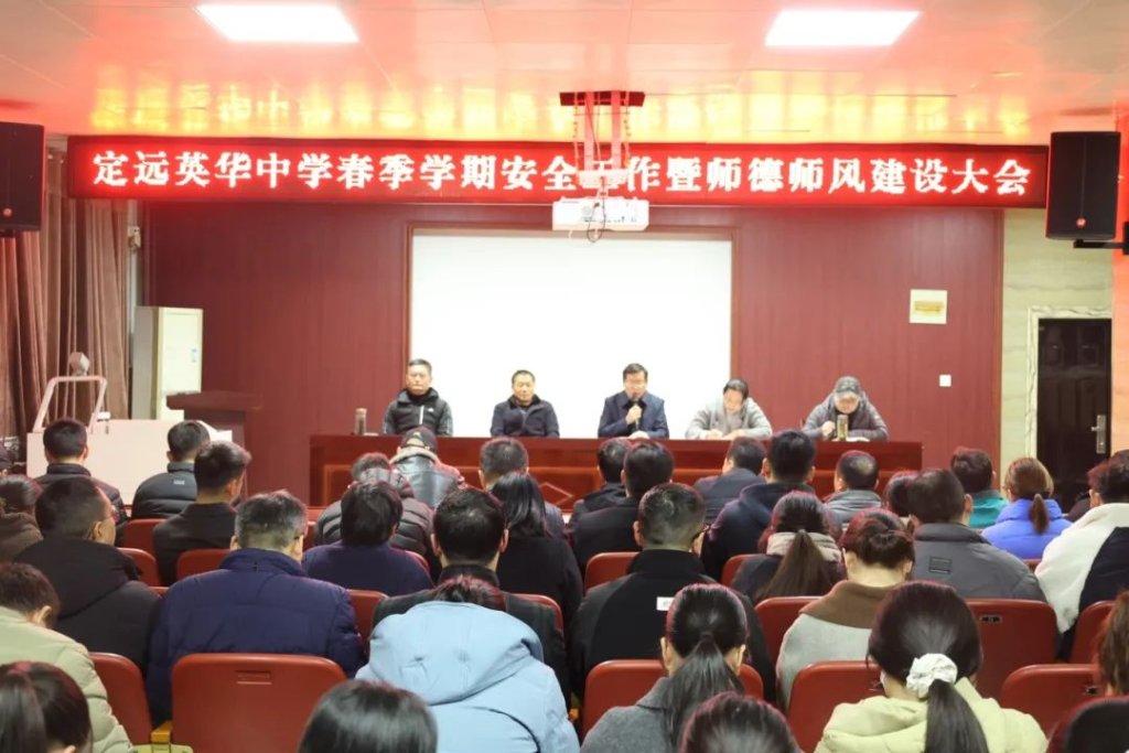 ~ 师德师风为立师之本,校园安全为育人保障。为激励全校教师进一步树立高尚的道德情操,塑造良好的教师形象,提高教师安全责任意识,3月13日晚上7:10,滁州市定远英华中学召开2024年春季学期安全工作暨师德师风建设大会。