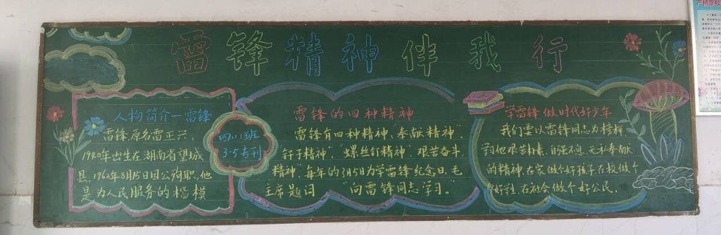 ~ 2024年3月 5日是第61个学雷锋纪念日。为了弘扬雷锋精神,充分发挥好“黑板报”的宣传阵地作用,在校园内积极营造浓厚的学习雷锋精神的宣传氛围,定远县严桥学校开展以“学雷锋”为主题的黑板报评比活动。