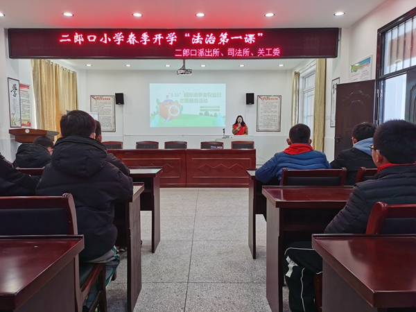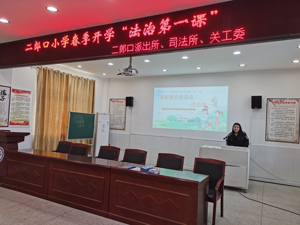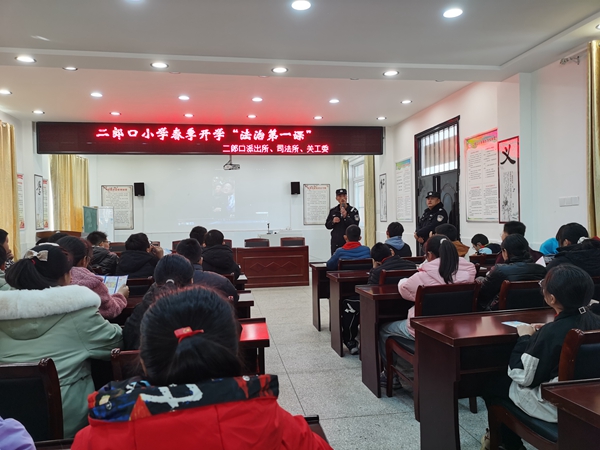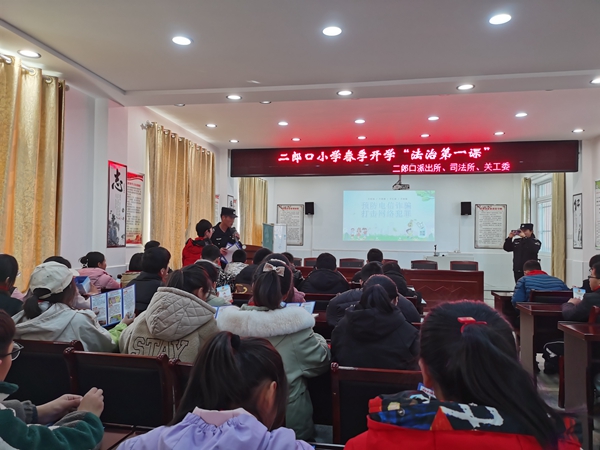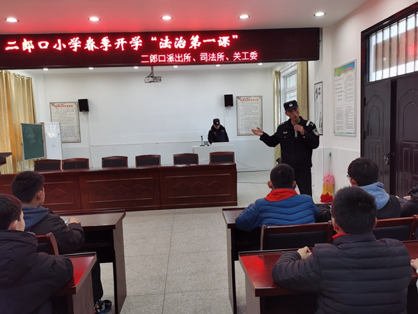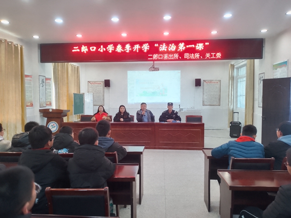 ~ 为了突出此次法治教育“第一课”重要性与深刻性,二郎口小学邀请了二郎口派出所、司法所、关工委相关领导到学校共同为师生们宣传法治教育。