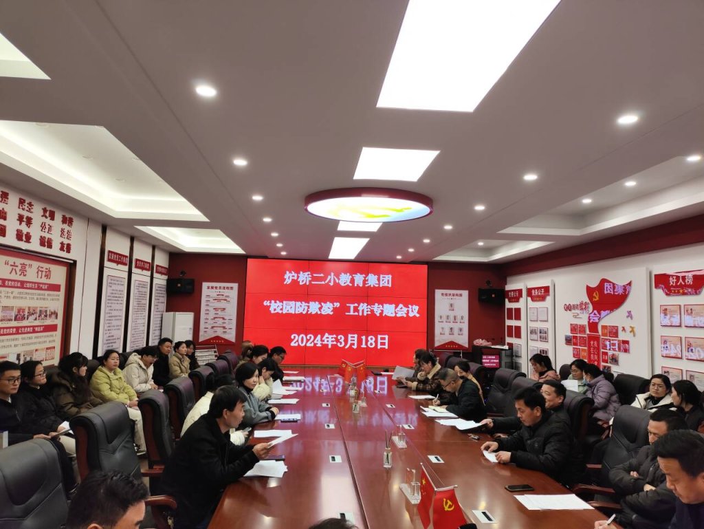 ~ 2024年3月18日,定远县炉桥镇第二小学教育集团召开“校园防欺凌”工作专题会议,共同商讨如何有效预防和应对校园欺凌问题。该校党支部书记、校长史正喜主持会议并讲话,全体班主任和相关部门负责人参加会议。