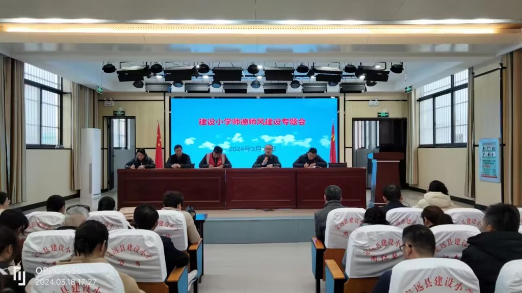 ~ 3月18日,定远县政府督导室副主任、建设小学党支部书记、校长陈灯荣主持召开“建设小学师德师风建设专题会”全体教师会。