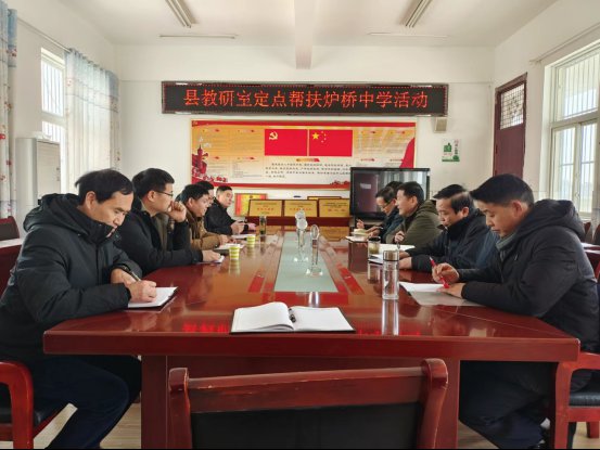 ~ 3月19日上午,定远县教体局教研室教研员吴坦、戚功明二人来到炉桥中学开展定点帮扶活动。该校党委书记柏传文主持了会议,教导处人员和年级组长、教研组长参加了会议。