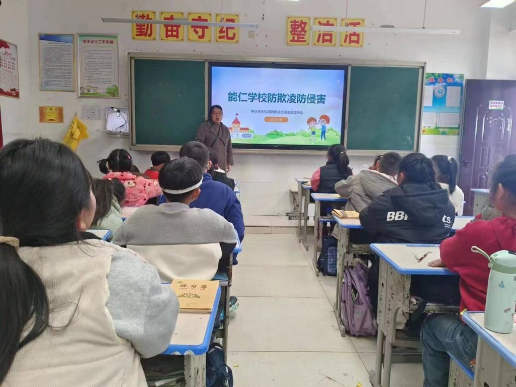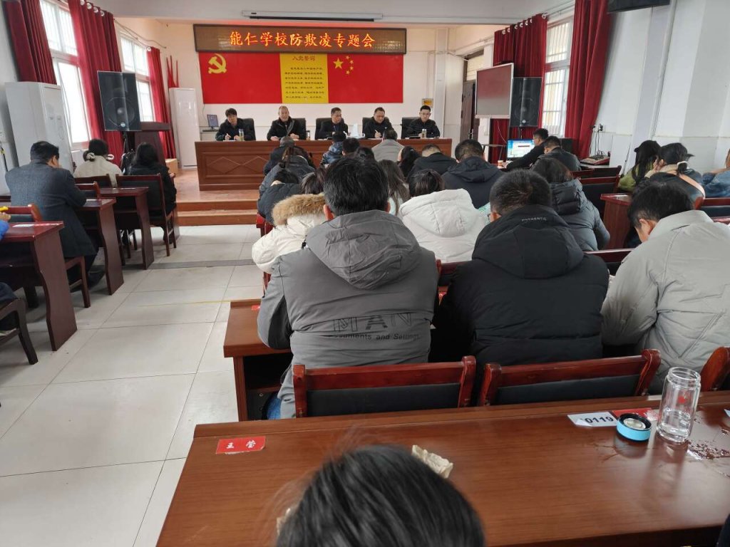 ~ 为加强校园安全管理,传播校园正能量,定远县能仁学校一直积极开展预防欺凌教育,增强学生自我保护意识。2024年3月18日下午,能仁学校召开校园防欺凌专题部署会议,校级领导、各班班主任和部分老师参加会议。