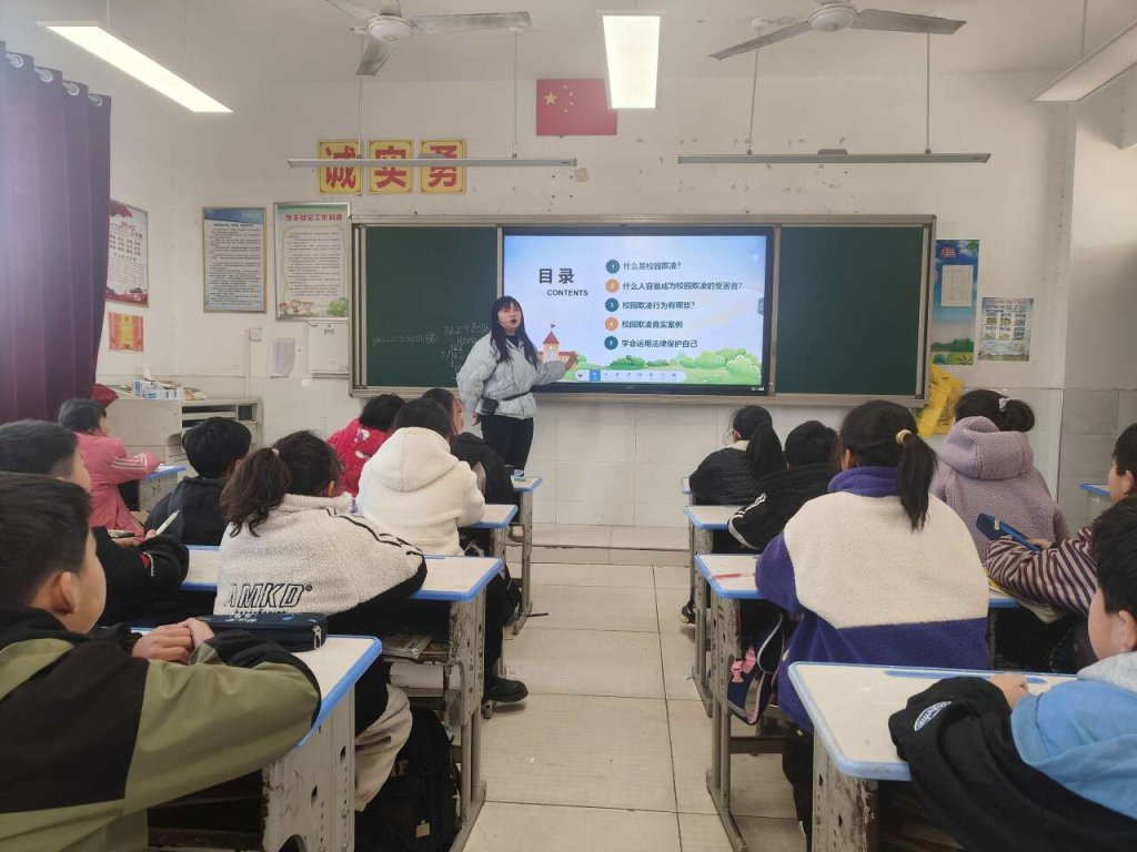 ~ 会后,各班主任及时召开预防校园欺凌主题班会。班主任围绕“校园欺凌是什么”“校园欺凌的起因”“校园欺凌的表现”“校园欺凌的危害”“我们能做什么”这五个问题展开,用一个个具体详实的案例告诉同学们在日常的学习和生活中如何预防校园欺凌以及遇到危险如何保护自己。