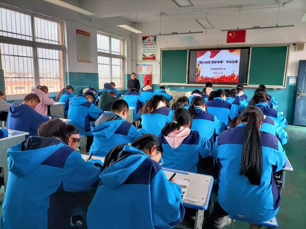 ~ 为扎实推进未成年人思想道德建设,激发学生爱党爱国情怀,弘扬中华民族传统文化,增强学生文化素质和文化自信,丰富校园文化生活,3月26日下午,定远县炉桥中学举行了“童心向党 筑梦未来”书法比赛,来自各班72名书法爱好者参加了比赛。