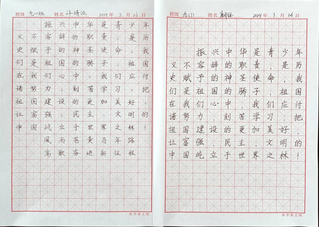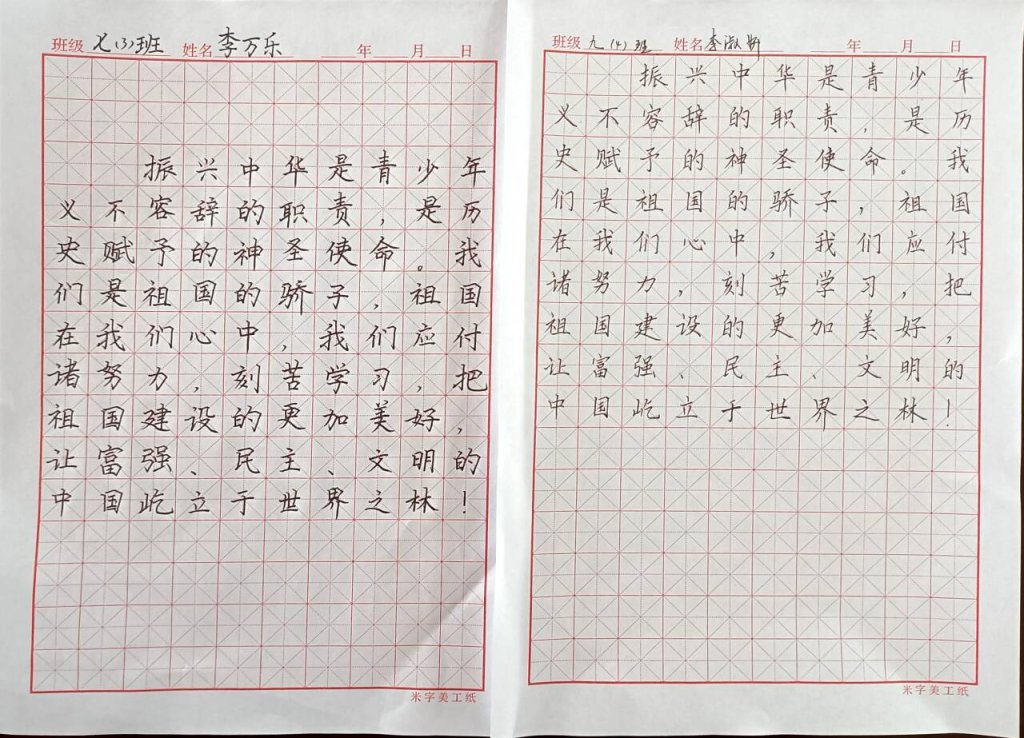 ~ 此次比赛,为同学们提供了展示书法艺术才华的平台,提升了学生规范书写汉字的意识,营造了积极向上、健康文明的校园文化氛围,同时也增强了炉中学子们实现中华民族伟大复兴中国梦的信心。