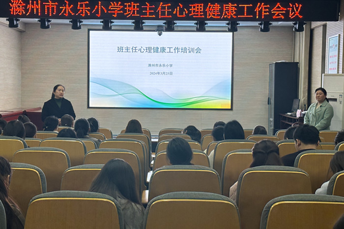 ~ 为进一步推进学校心理健康教育工作,提高学校班主任心理健康教育水平,严格落实“双减”政策,维护师生身心健康,3月25日,滁州市永乐小学召开了班主任心理健康工作会议,会议由副校长张莉莉主持,班主任及心理健康老师参加会议。