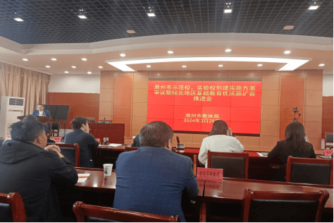~ 为深入贯彻落实《安徽省人民政府办公厅关于皖北地区基础教育优质资源扩容工程的实施意见》等文件和全省动员部署会议精神,进一步推动滁州和南京等地结对合作工作落细落实,3月29日下午,定远县教体工委副书记黄如勇,县政府督学、基教股负责人王元平,三所被帮扶学校负责人一行参加了滁州市“皖北地区基础教育优质资源扩容工程”工作推进会,会议由滁州市教体局基教处主任薛珊珊主持,滁州市相关专家和各县区教体局分管领导参加了会议。