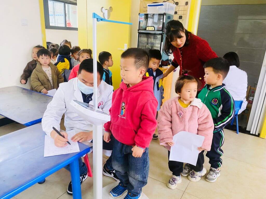 ~ 3至6岁是儿童生长发育的重要的阶段。为了全面监测幼儿的生长发育情况,预防潜在疾病,并提升儿童的整体健康水平,定远县炉桥镇医院的医护人员于2024年4月2日对年家岗小学幼儿园幼儿进行了儿童健康的体格检查。体检内容包括:身高、体重、龋齿、心肺听诊、血红蛋白(指尖采血)、视力检测等。