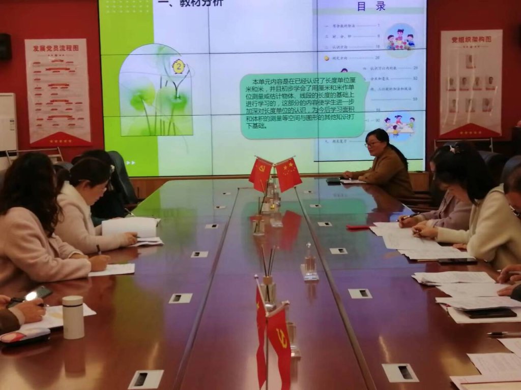 ~ 活动现场,数学组的老师们结合新课程标准,深度研读和分析教材,就该校吴阿梅老师主备的二年级下册《毫米的认识》初稿进行深入剖析,他们从学生现有发展水平出发,探讨教学策略,把握知识链接,各抒己见,交流思想,呈现出一场智慧盛宴。
