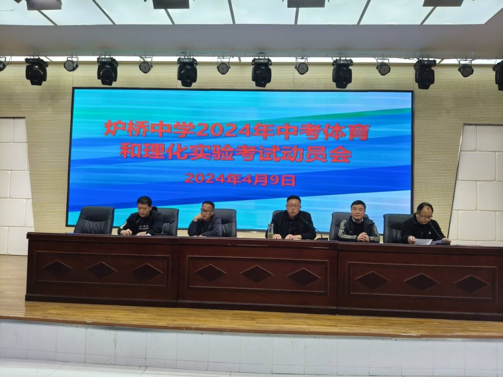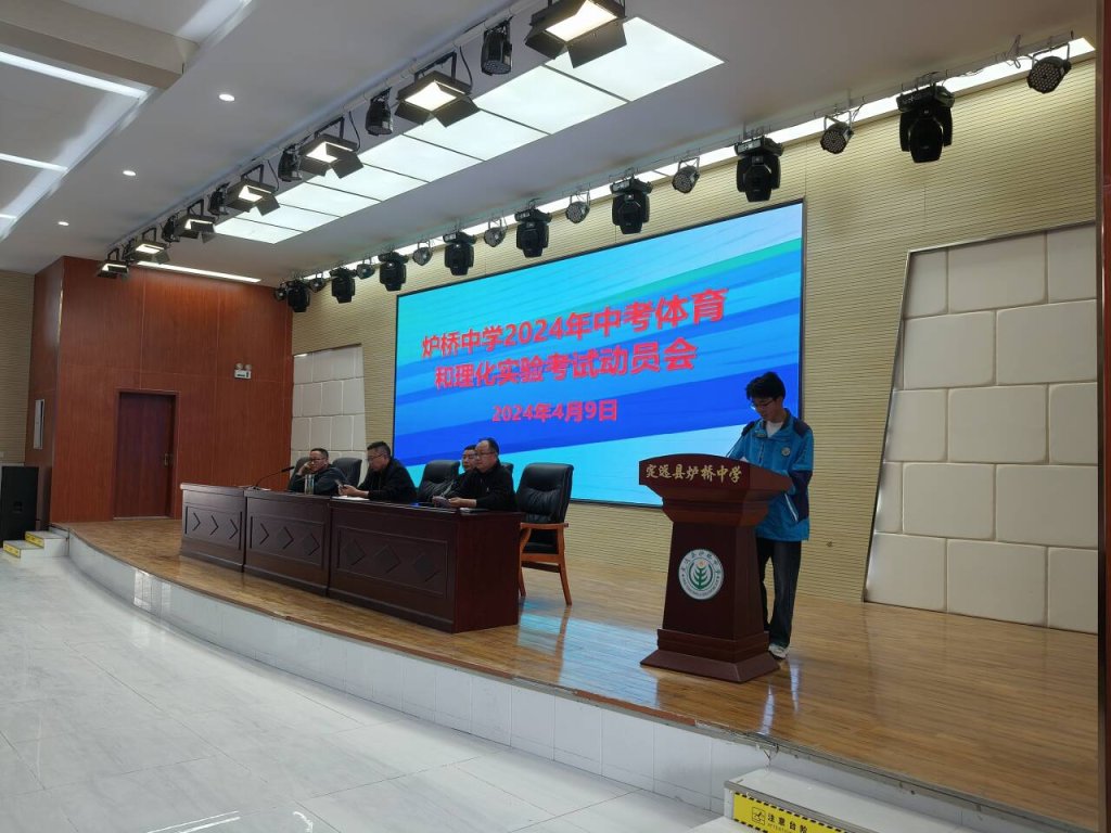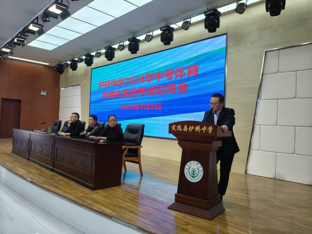 ~ 一年一度的中考体育和理化实验考试如期而至。4月9日下午,定远县炉桥中学在学校报告厅举行了2024年中考体育和理化实验考试动员大会,九年级全体学生、班主任、体育教师、理化教师以及学校相关领导参加会议,会议由校长办公室主任俞泽柱主持。