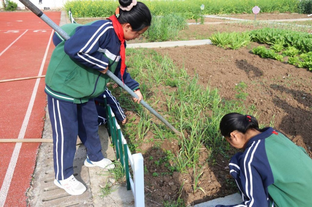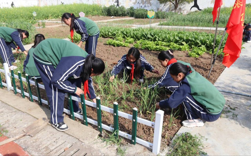 ~ 4月11日,定远县永康小学教育集团少先大队组织部分队员来到明德校区“劳动实践基地”开展劳动教育活动,引导少先队员在实践中体验劳动美,树立正确的价值取向,全面健康成长。