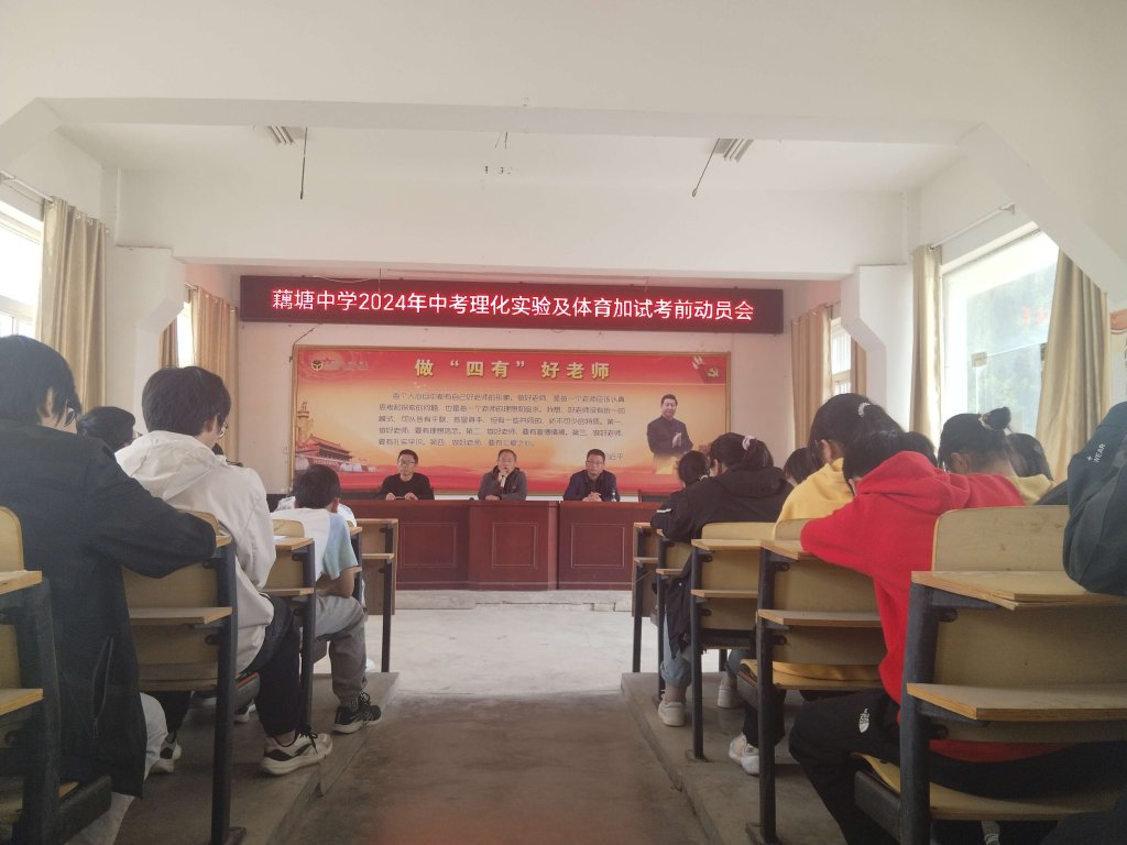 ~ 定远县2024年中考理化实验及体育加试在即。为确保考生安全,顺利完成本次考试,2024年4月11日,定远县藕塘中学召开中考理化实验及体育加试考前动员会,部署相关工作,提出要求。会议由该校党支部副书记刘斌主持,该校初三毕业班全体学生以及班主任、教导处、理化教师参加了会议。