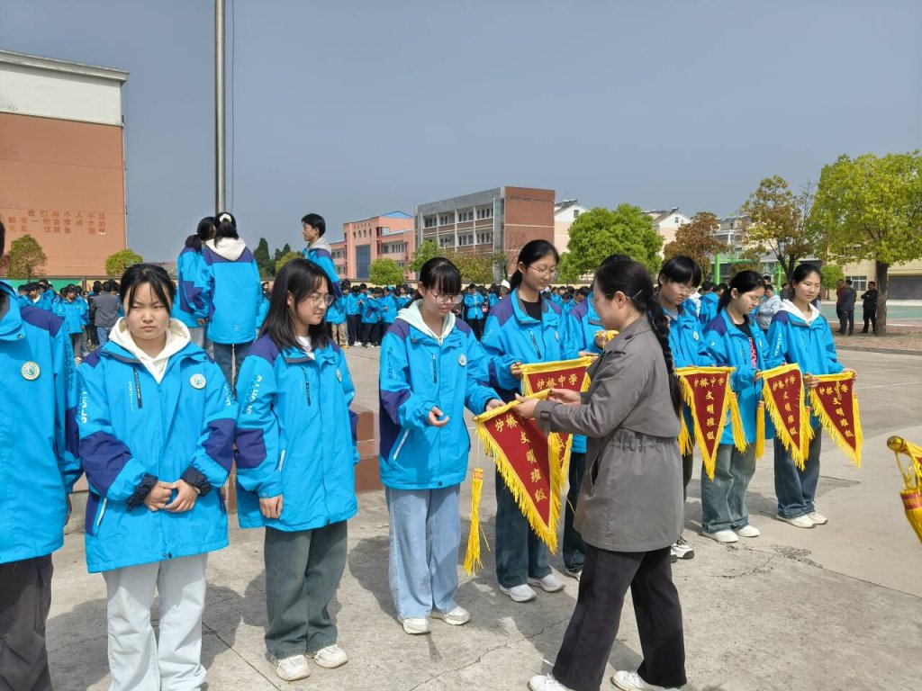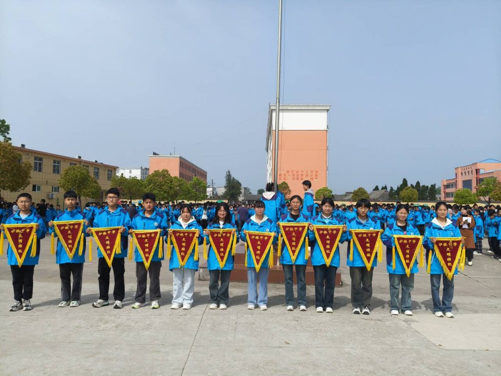 ~ 学校政教、团委组织开展文明班级评选活动,主要从教学管理、文明礼仪、遵规守纪、班风建设、安全管理、班级文化、校服着装、德育活动等方面进行量化评价,最终评出12个班级,授予“文明班级”称号。升旗仪式上,学校韦凤娣校长为获奖班级颁发了“文明班级”锦旗。韦校长强调学校始终贯彻“五育并举”教育方针,注重培养学生全面发展,坚持“立校德为先,发展人为本”的办学理念,立德树人、培根铸魂,我校学子们以实际行动践行社会主义核心价值观,传承传统美德,为班级争光添彩。希望受表彰的班级珍惜荣誉、率先垂范、再创佳绩,也希望全校班级以受表彰的班级为榜样,团结一心、奋发进取、赶超先进,树立良好的班风学风。