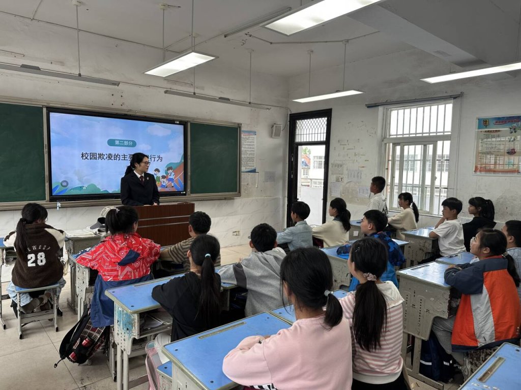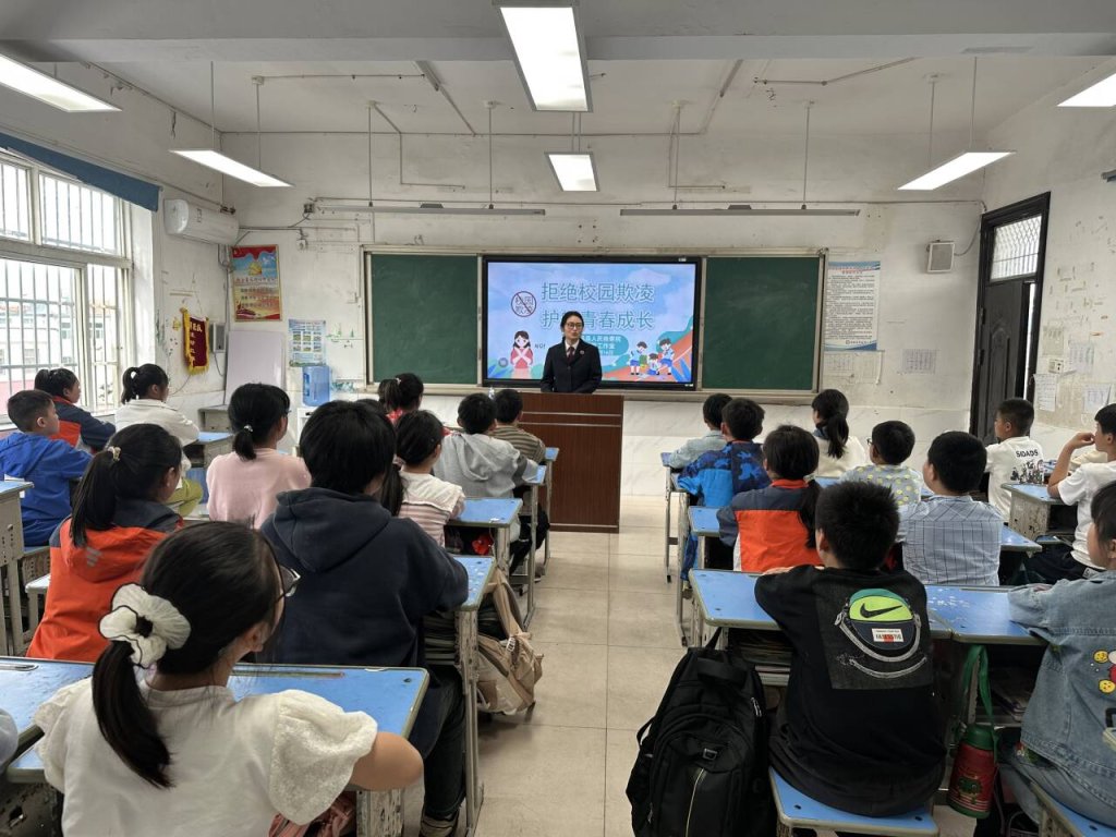 4月16日,定远县人民检察院检察官到年家岗小学开展以“拒绝校园欺凌,护航青春成长”为主题的宣传活动。