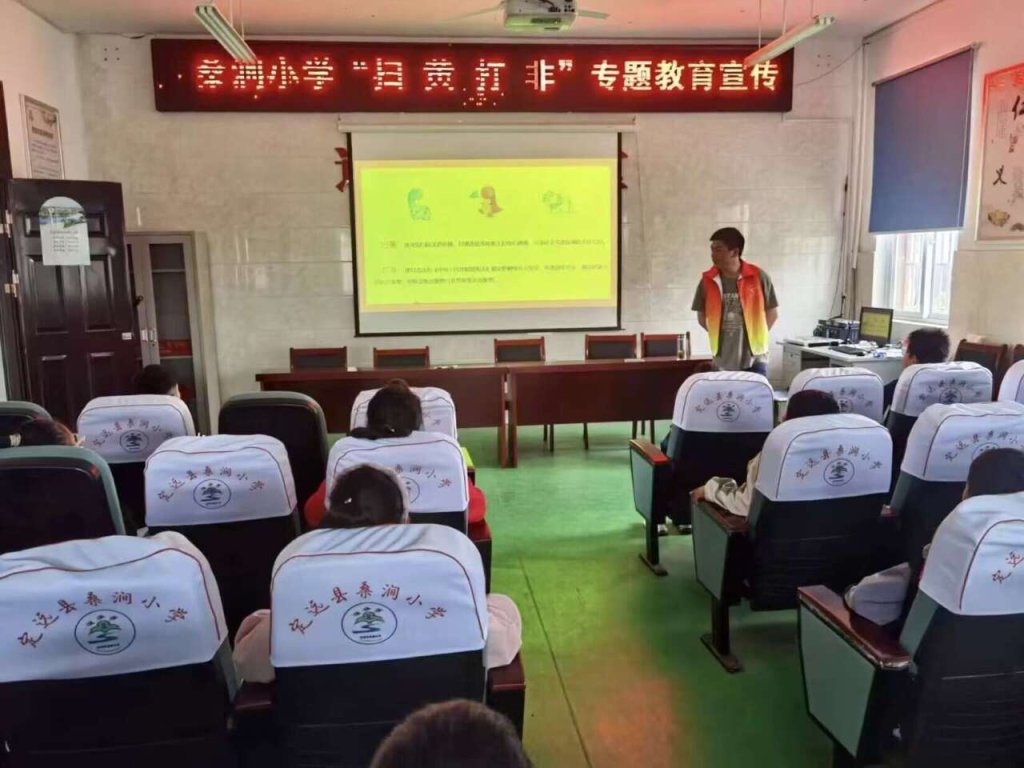 ~ 学校利用宣传栏、LED显示屏等,播放“打黄扫非”宣传口号、相关法律法规和举报方式等,在校园内形成浓厚的宣传氛围,进一步提高“扫黄打非”工作的影响力和宣传效果。学校党支部协同德育处、教导处及班主任,对校内图书馆及学生自带图书开展专项整治行动,净化校内文化环境。德育处结合校园实际展开“扫黄打非”专题宣讲,进一步增强了孩子们鉴别“黄、非”及其危害的能力。为提高教师对“扫黄打非”工作的认识和了解,全校教职工积极参加“国家安全有奖知识竞答”。有效的增强了防范意识。