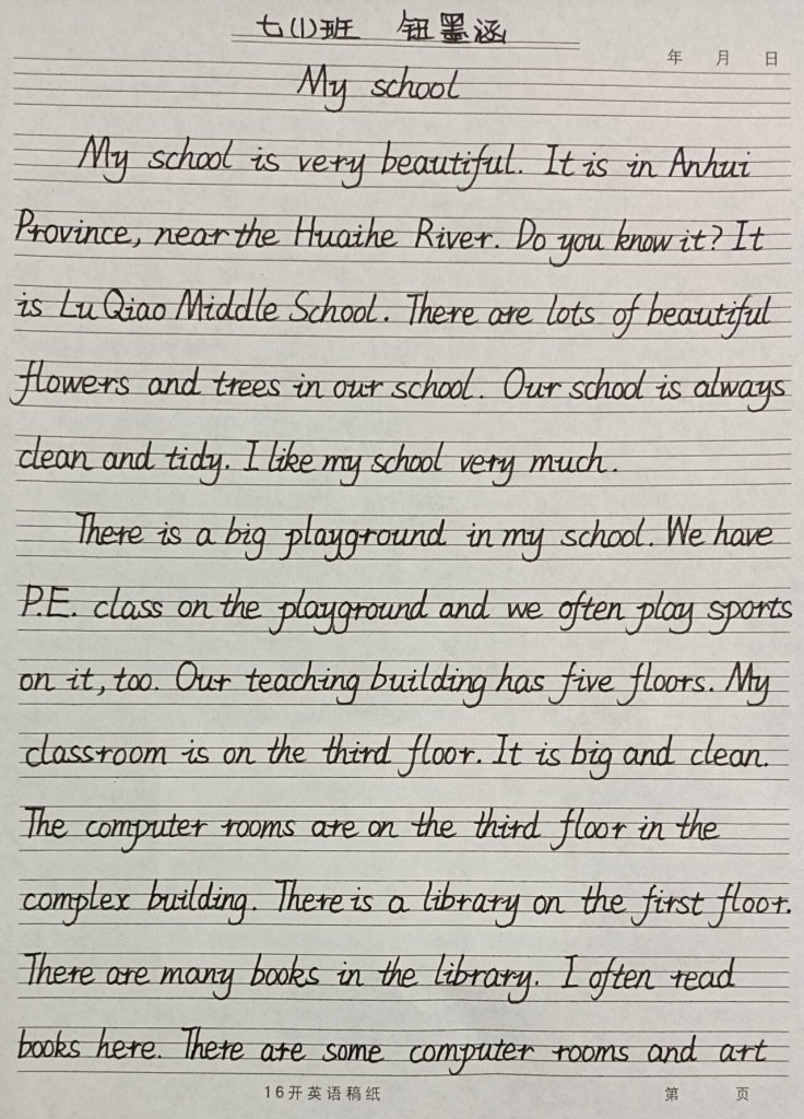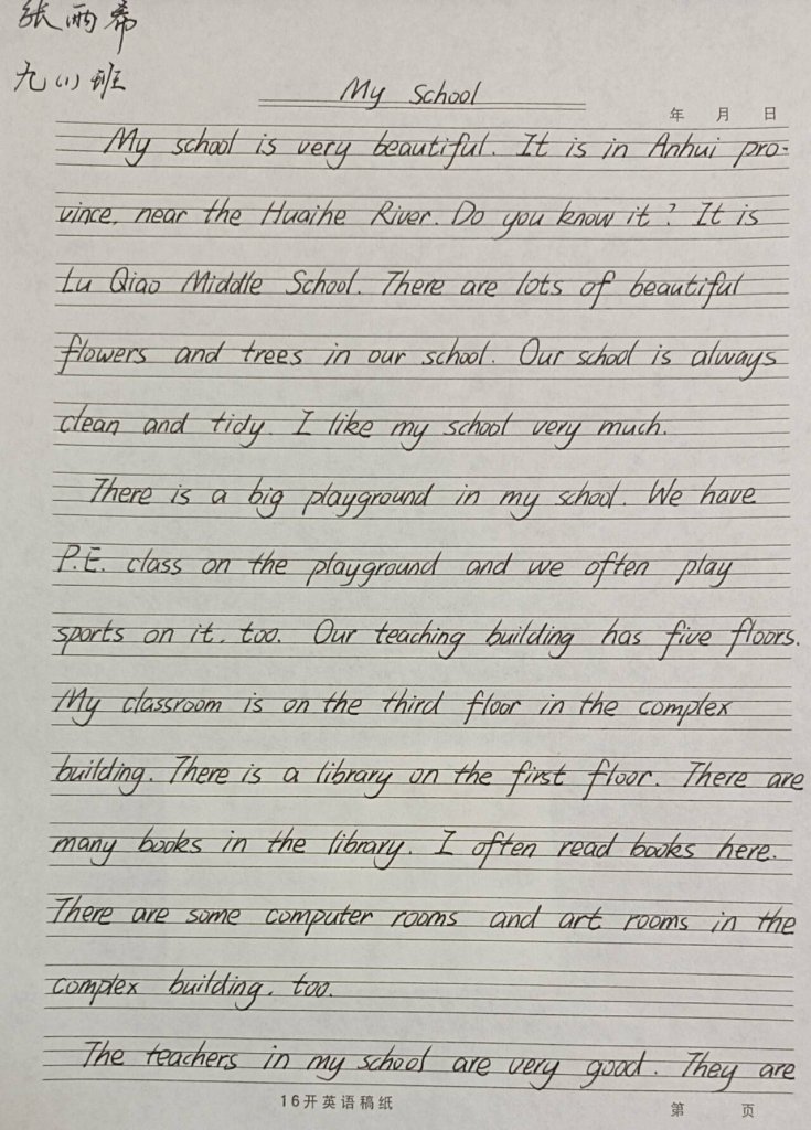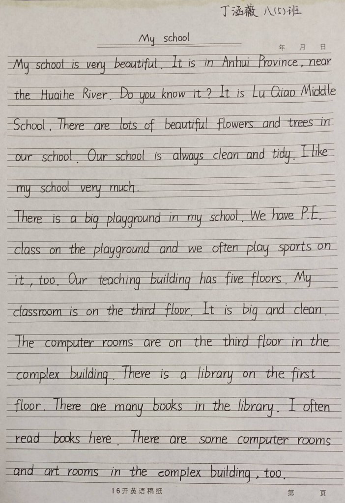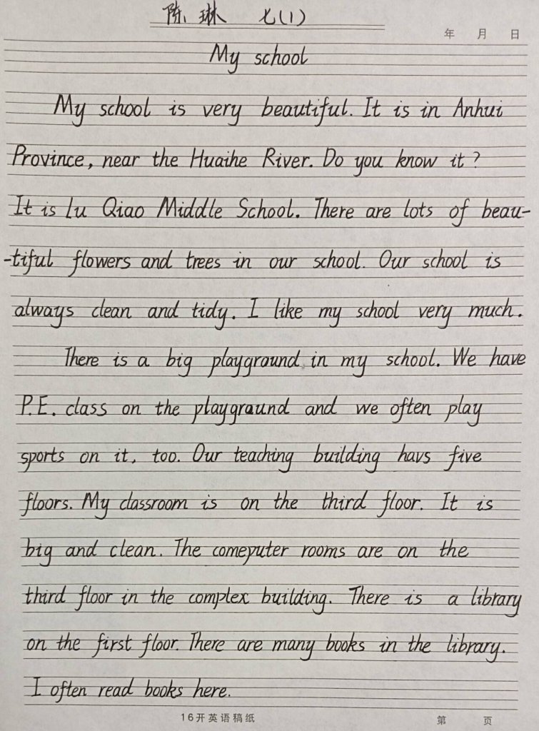 ~ 近日,定远县炉桥中学英语组举办了“英”我而美丽英文书写大赛。旨在进一步促进学生对英语学习的兴趣,培养学生良好的英语书写习惯,营造浓厚的英语学习氛围。