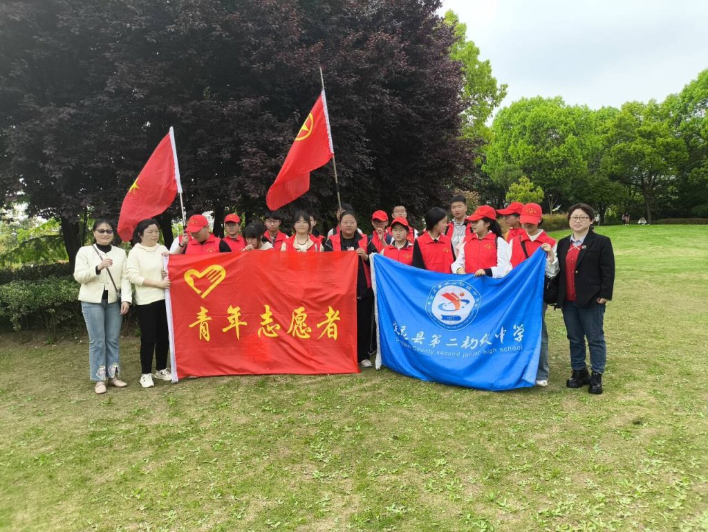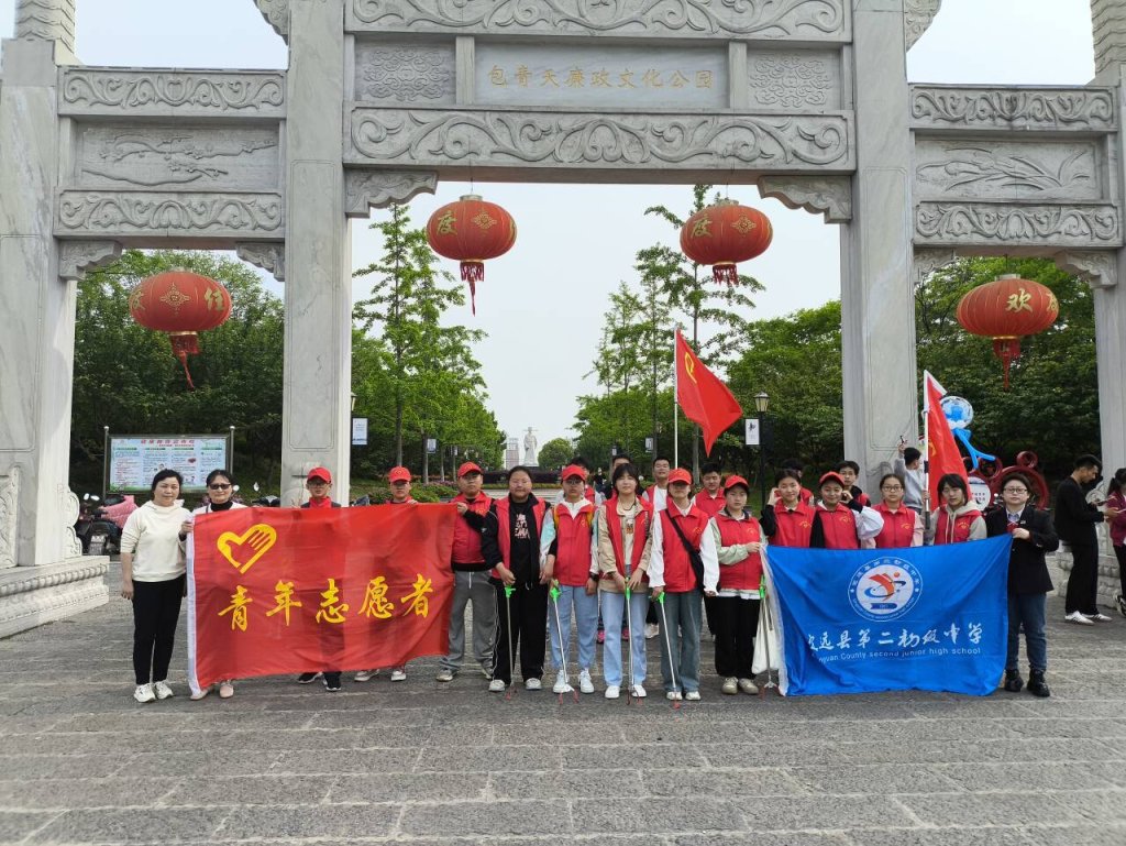 ~ 为了培养学生的环保意识、树立科学文明的生活方式,充分调动学生学习英语、使用英语的积极性,推进英语组市级课题的落实,4月21日,定远县第二初级中学英语教研组赴包青天廉政文化公园开展“捡拾垃圾 美化环境”志愿服务活动。市级英语课题组成员以及八年级学生志愿者参加活动。