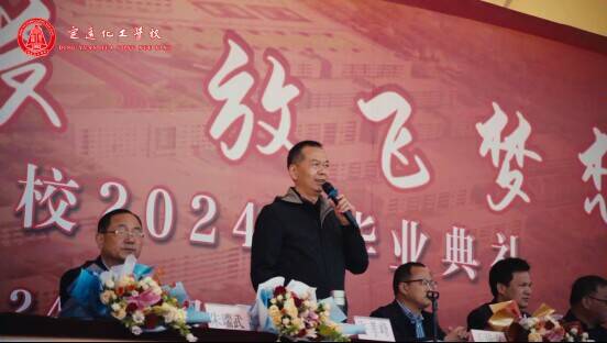 ~ 校党委书记许孝峰在总结讲话中回顾了学子们的成长,对他们取得的成绩表示肯定,并对他们未来的发展寄予厚望。他鼓励同学们要坚定信念,勇敢地面对未来的挑战,不断学习和进步,为实现自己的梦想而努力奋斗。他赠言毕业生们:“走进定远化工学校门,大家就是定远化工学校人。希望同学们毕业后常回家看看,这里永远是你们温暖的家。同时,走好未来人生路,做对社会有用的人,用自己的智慧和技能为社会进步贡献力量。”