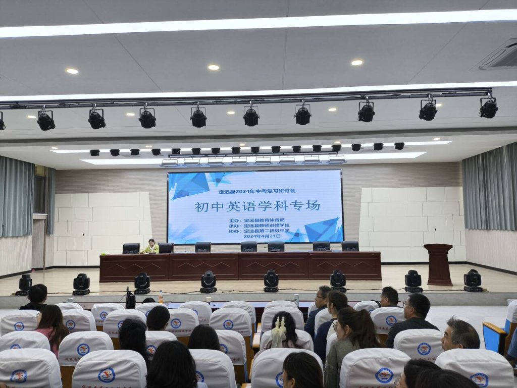 ~ 4月21日上午,定远县2024年中考复习研讨会初中英语学科专场在第二初级中学报告厅举行。参加本次会议的有:合肥市瑶海区教研室主任傅京,定远县教体局教研室主任、师训中心主任武红,教研室教研员李小玲,教师进修学校老师江宁以及全县初中英语教师。