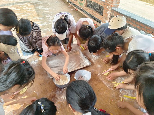 ~ 次日,学生们在营地体验了捏泥人、编草马等传统手工艺,以及参与了染布等非物质文化遗产项目,这些活动不仅锻炼了学生们的动手能力,也加深了他们对中国传统文化的认识和了解。此外,国学馆内举行了《弟子规》颂读活动,通过诵读经典,进一步培养了学生们的道德情操。学生们还参与了炸土豆、无动力乐园等团队合作项目,旨在提升团队精神和创新思维。