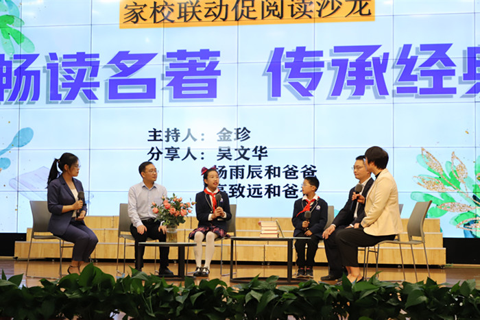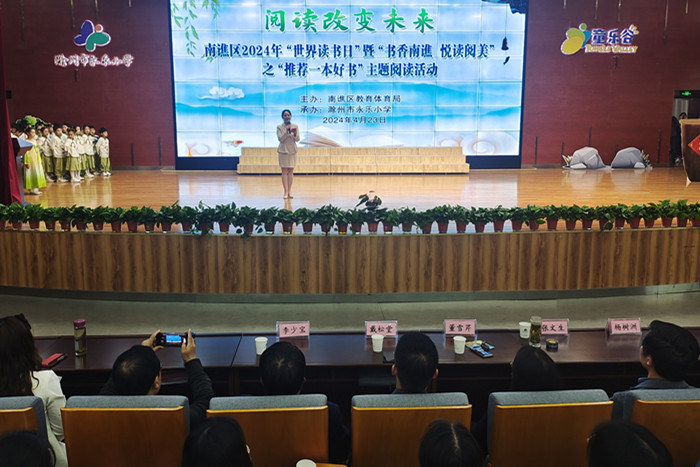 ~ 活动以主会场:汇报展演(“童乐谷”报告厅);分会场:“推荐一本好书”现场分享(报告厅门厅)、图书漂流活动(学校西广场)形式展开。主会场,汇报展演节目丰富多样精彩纷呈,经典传唱、课本剧目、经典诵读、师生分享等形式,多样化、高浓度呈现了该区师生阅读成果。进一步激发广大师生阅读兴趣,养成良好读书习惯。分会场,图书漂流活动和“推荐一本好书”现场分享,很多家长和小朋友也积极地参与其中,活动不仅传递了阅读的快乐,更展现了学生们的文化自信和精神风貌。尤为一提的是在“推荐一本好书”现场分享环节,南谯区委教体工委委员、区教体局副局长董雪芹更是亲临现场,鼓励同学们多阅读、多思考、多分享,让阅读的种子在学生心中生根发芽,引导学生感受阅读的力量和魅力。