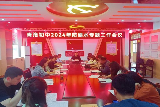 ~ 2024年4月24日,定远县青洛初中在综合楼党员活动室召开2024年“防溺水”专题工作会议,会议由学校党支部书记、校长单国选主持,全体班主任参会。