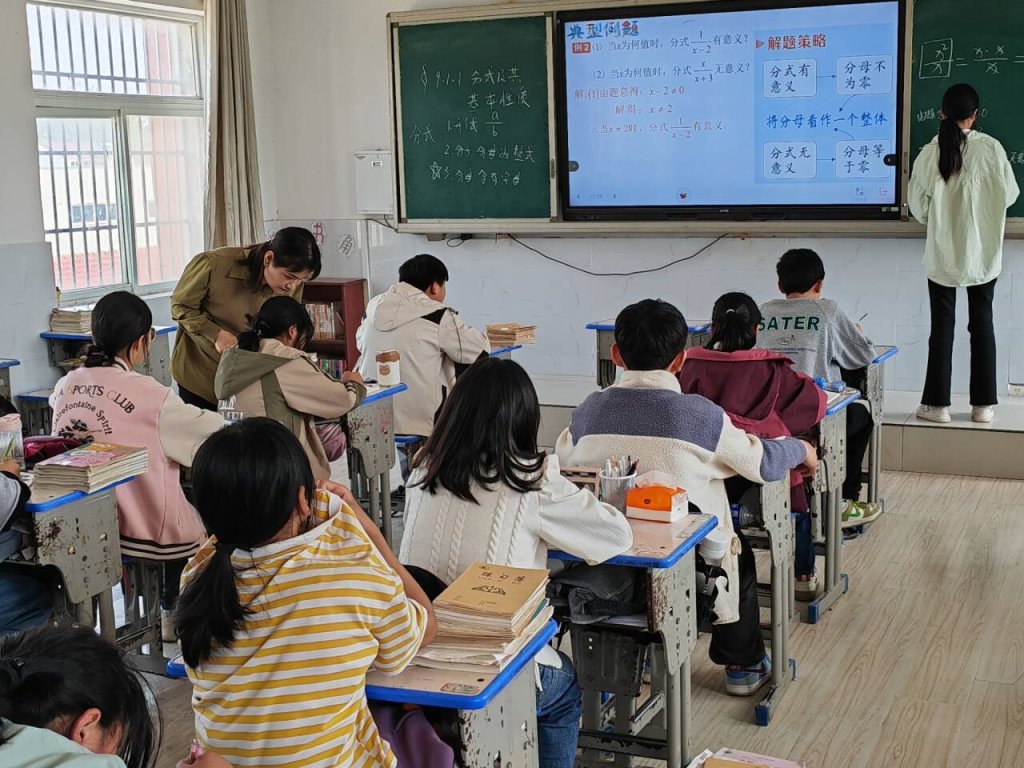 ~ 本次示范课由王平老师讲授七年级数学《分式及其基本性质》,王老师根据本班学生实际情况自制课件,实用性强。通过板书、多媒体等为媒介,以课堂自主练习为主线,积极互动提问,充分调动班级每一位同学的参与度。在课堂上学生也乐于交流,学生的参与度高,不仅能够按照老师的要求完成课堂活动,还能充分发挥自己的创造力、想象力。整节课讲、议、练活动衔接自如,为大家呈现了一节生动、活泼、精彩、高效的公开课。