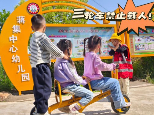 在模拟现场,老师利用幼儿园活动场地规划了一个“微型马路交通场景”,引导幼儿扮演不同的交通参与者角色,参与到交通当中,如行人、司机、交警和文明劝导员等,让幼儿知道作为行人,骑车需要戴头盔,三轮车禁止载人等。孩子们在现场热情高涨,积极主动地参与其中,认真地做好自己的角色。这样让孩子们在参与中直观地学习到了交通安全知识,知道了在外出时要遵守交通规则。