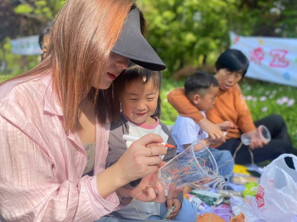~ 随后,小班的小朋友们和家长一起参与了亲子风铃涂鸦活动。孩子们发挥想象力,用五彩的画笔在风铃上描绘出各种可爱的图案,家长们则在一旁耐心指导,共同创作出独一无二的风铃作品。这些风铃不仅装饰了美丽的公园,也见证了亲子间共同创作的温馨时光。
