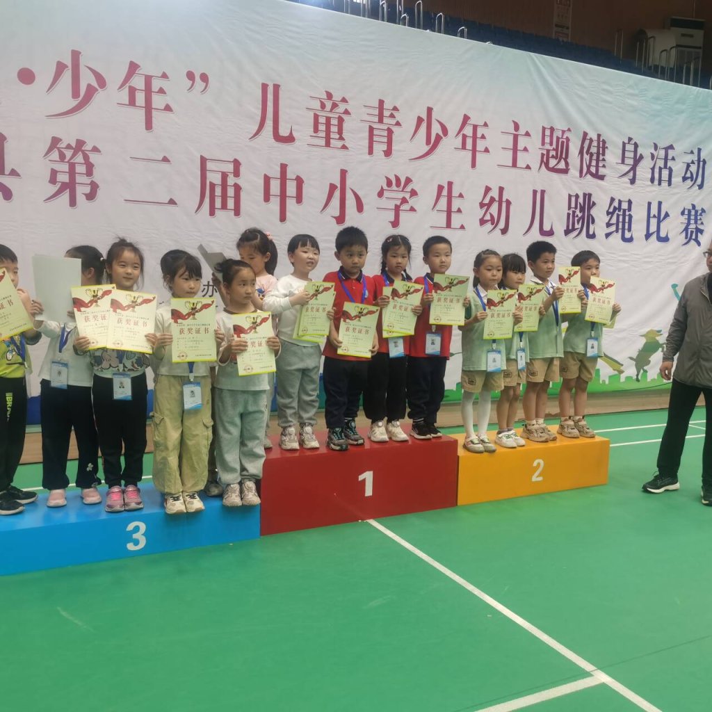 此外,在1分钟10人混合跳项目中,实验幼儿园代表队凭借默契的配合和出色的技术,荣获第三名;在考验团队协作能力的4×30秒单摇接力赛中,他们更是发挥出色,勇夺一等奖。最终,实验幼儿园还荣获了幼儿园组团体奖二等奖,充分展现了该园在跳绳运动方面的实力和水平。